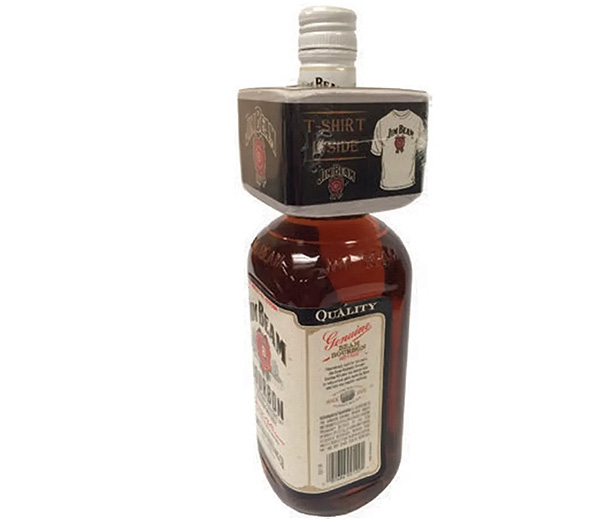 Packed tightly into a 3” x 3” box with a unique locking system, this T-shirt slides cleanly over the necks of most spirit and wine bottles. Well-suited as a gift with purchase or giveaway in the entertainment or beverage sectors.