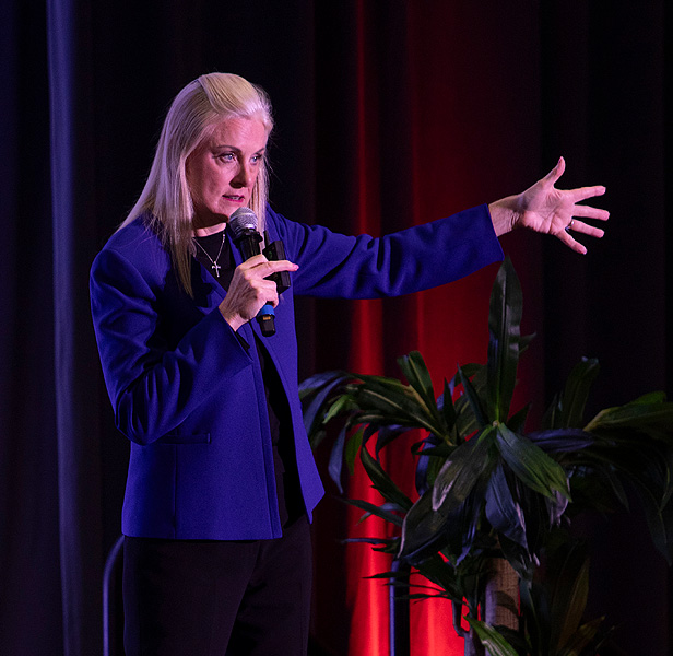 Kelly began by acknowledging the top worries weighing on business leaders’ minds – cybersecurity, inflation, the stock market and supply chain issues. She noted that right now it’s a “complex economic environment” where there’s moderate growth but also persistent – but manageable – inflation, comparing the latter to a “runny nose – annoying, but not debilitating.”