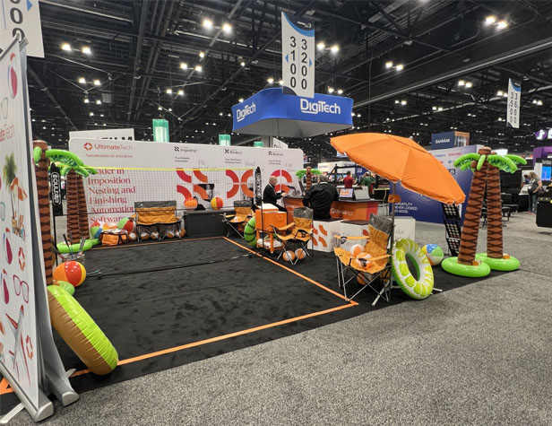 “People know how they work – they direct people – but there’s a different way to use them,” Lowe said. “We’re seeing a big influx of dance floors for weddings. It’s a one-night event. … We’ll see people use the same material to wrap bars at weddings because people want the whole branding experience. Look at our booth – everything has been wrapped by our media, so it can be transformed. We started with this booth, and it was nothing but white.”