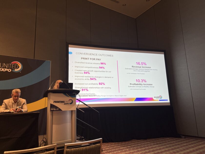 That is the crux of what Alliance Insights’ Lisa Cross, principal analyst, and Nathan Safran, vice president of research, focused on in their presentation “Adapting to the New Era of Commercial Printing: Profitability – Pivots, Punts and Plays,” on October 23 at PRINTING United Expo in Orlando.