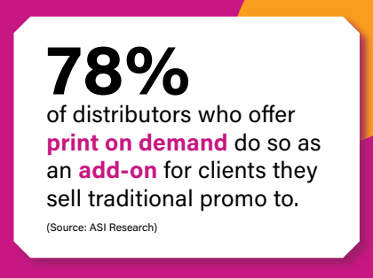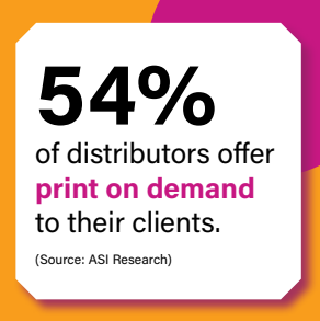 The print-on-demand revolution is here. Simply put, the way promotional products and branded merchandise are decorated and delivered has changed. You don’t have to print products in bulk, nor are giveaways tied to being physically present at an event. The numbers back up this claim: ASI Research found that 54% of distributors offer print-on-demand services to clients.
