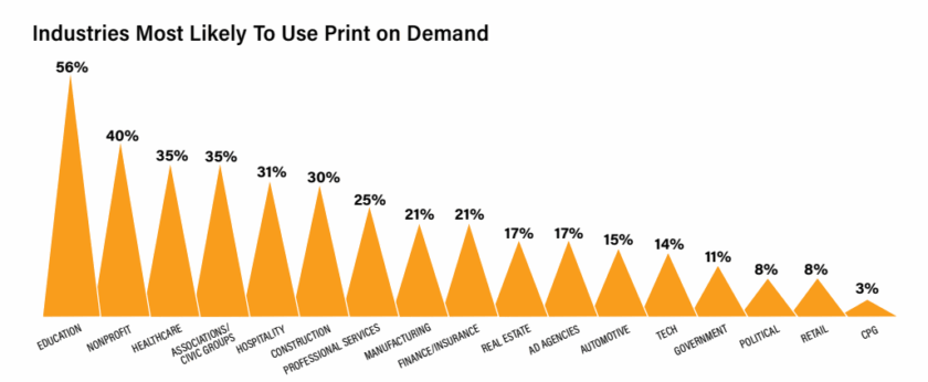 Seifert says that while print on demand hasn’t fully taken over the industry, he sees it to some degree at a lot of companies. The larger firms, he says, are a mix of traditional inventorying and print on demand, but a lot of the smaller companies are choosing print on demand to minimize risk.