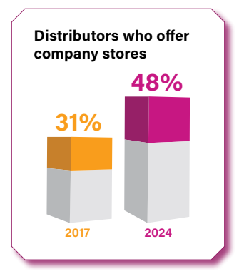 Counselor’s 2025 State of the Industry report found that 48% of distributors offer company stores – a figure that has increased each of the last two years. So as e-commerce continues to thrive and fuel print on demand, company stores will be an increasingly important part of the equation.