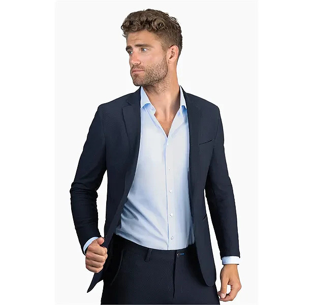 The AIR blazer is made from cooling mesh fabric commonly found in sportswear that’s been upscaled and retailored. It functions like any blazer, but with extreme stretch, comfort, no wrinkles and plenty of pockets. Machine washable.