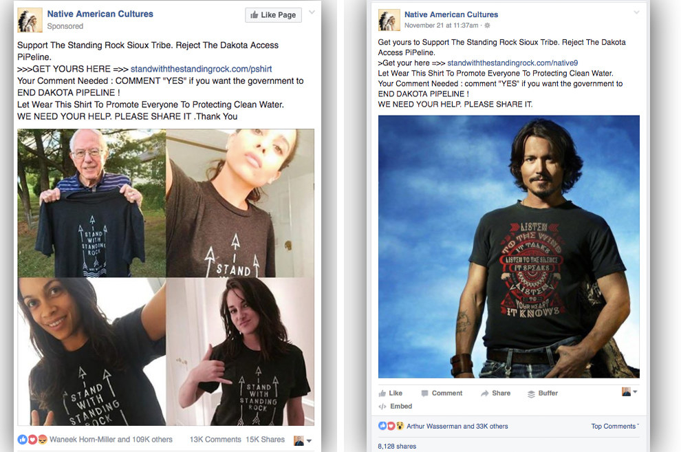 While protestors fought the development of the Dakota Access Pipeline at the Standing Rock Reservaction in North Dakota, some Facebook pages tried to cash in on the movement by selling stolen T-shirt designs and fooling consumers into believing that their money would go toward the protest effort. BuzzFeed reported that the owners of the pages,…