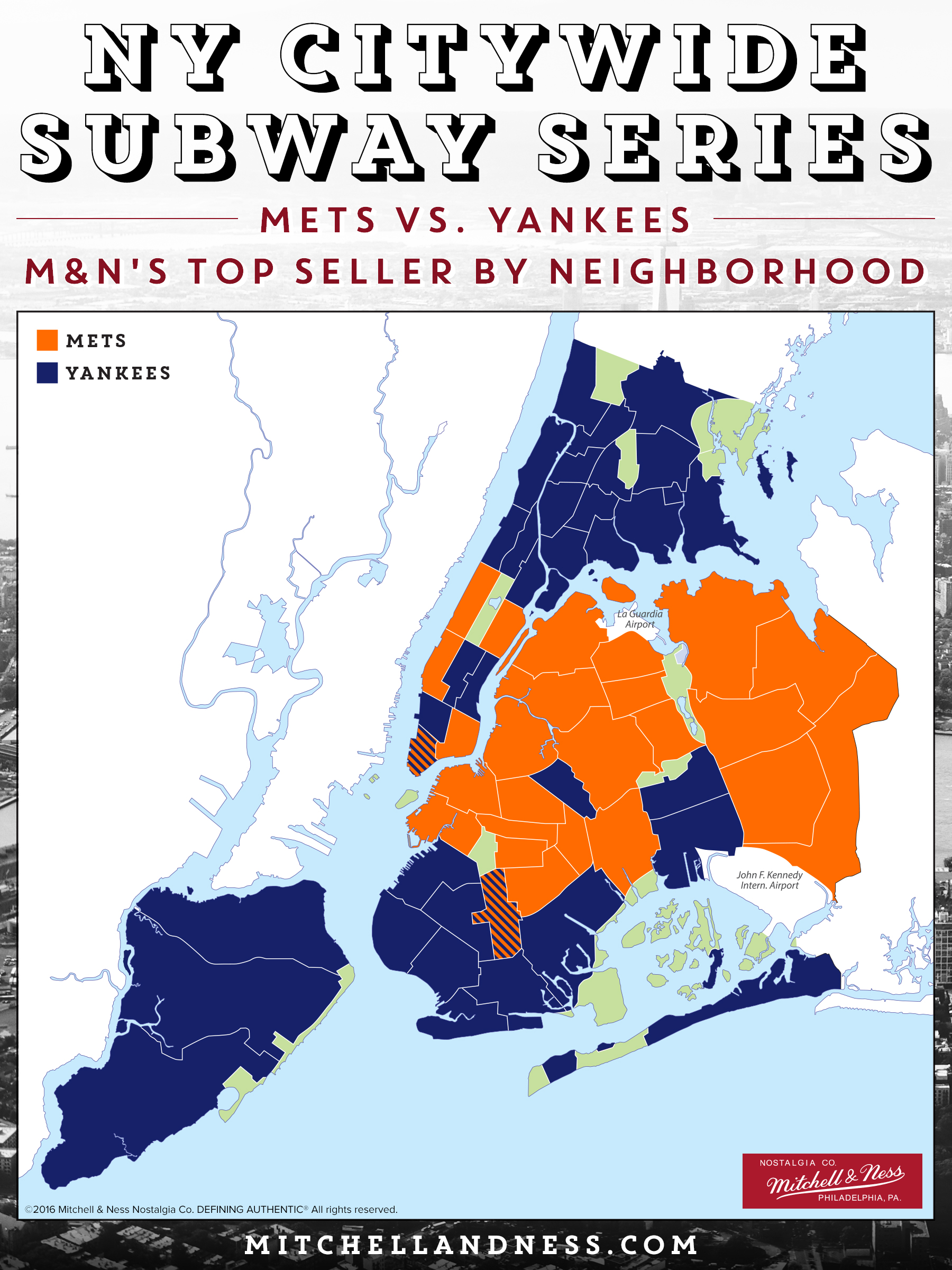Yankees or Mets? For New Yorkers (and some New Jersey folks, too), the debate will rage on forever. Today marks the two teams’ 189th meeting in the historic Subway Series. To commemorate the occasion, Mitchell & Ness, Philadelphia, mapped out which team is winning in terms of merchandise it has sold in New York City’s…