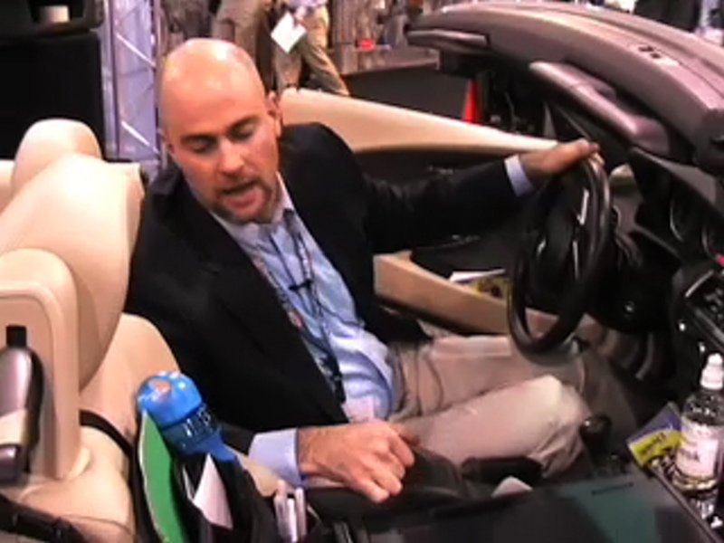 Nothing draws attention to a booth like a new car. Kevin Bart, director of sales, sits in the convertible to discuss his company’s new product for 2007, the AutoExec. The item has been causing a stir at the expo. As business becomes increasingly mobile, people are taking work as they travel. It can be dangerous but the habit can’t be stopped. Mobile Office is addressing the problem by creating a solution that holds items in place and makes the mobile executive safer. If you’ve ever dived under your seat chasing a cell phone that slid to the floor after a sharp turn, you will