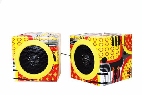 Cubed Folding Speakers from Source Abroad are great for mailers, trade show handouts and spontaneous rocking. The speakers fold flat for storage and pop up whenever you need a power E chord, which is all the time.