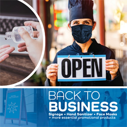 As business either have reopened or prepare to reopen their doors following closures, finding the right products for their needs is key. Whether that’s masks, signage and sanitizer to keep employees and customers safe, or items for any other promotional use, this catalog will guide your search through the top promotional products that businesses will need for safely reopening.